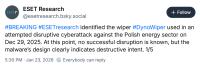 Slo-Tech – Raziskovalci so razkrili, da je bil poljski elektroenergetski sistem decembra tarča večjega kibernetskega napada, ki pa ni povzročil izpada dobave električne energije. Napad je potekal zadnji teden v decembru, osredotočen pa je bil na prekinitev komunikacije med obnovljivimi viri energije in distribucijskimi centri. Zakaj napad ni uspel, ni znano. Več na Slo-Techu.